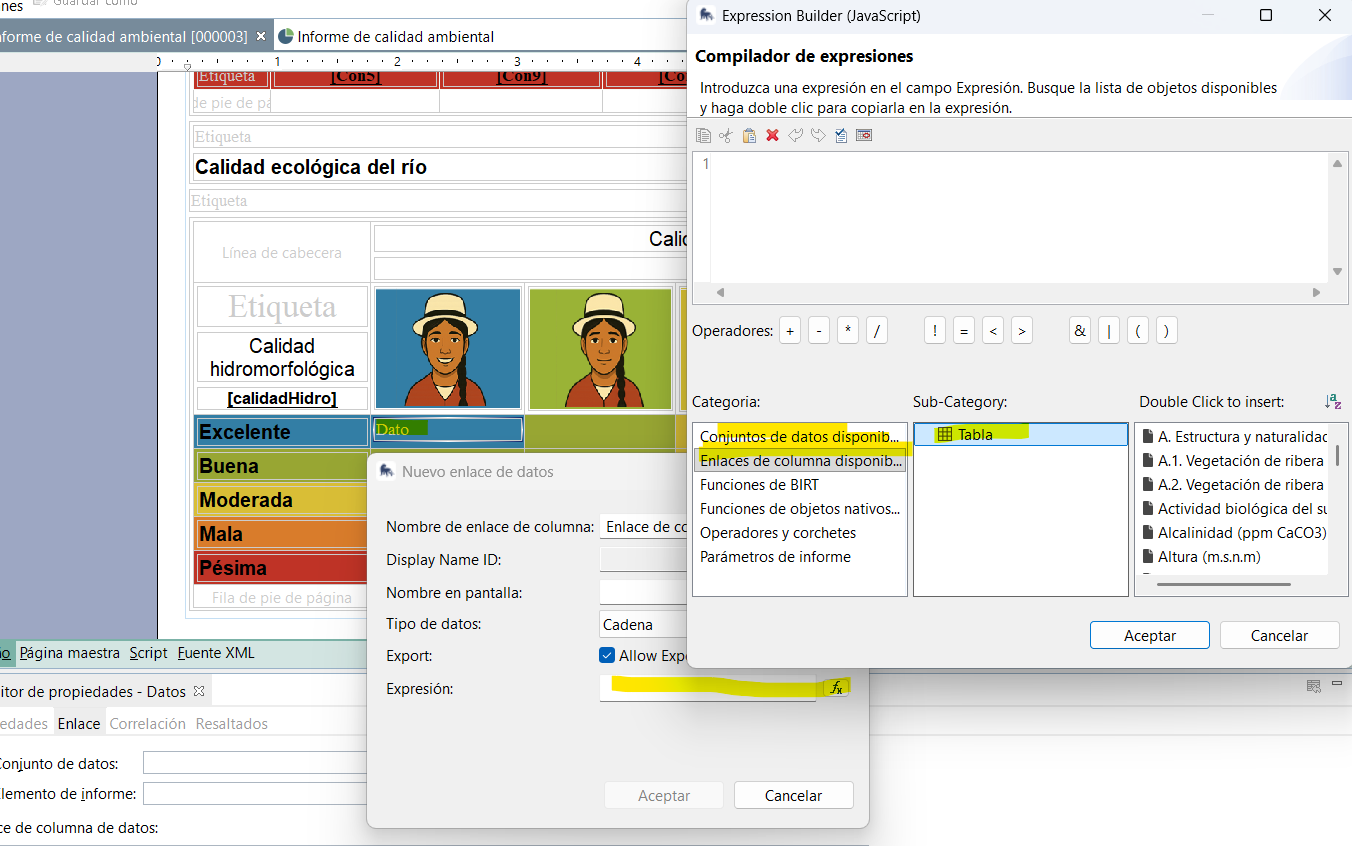 Finally, in a third table, I want to use calidadHidro and calidadBio to create a new calculated field with the expression builder (as previous steps).