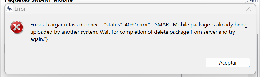 When I try to export package to SMART desktop to SMART mobile using the connect option I have a error 409 (image below)