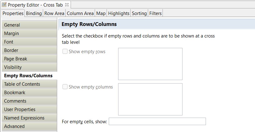 How can I format the Cross Tab so that it only populates rows with data?