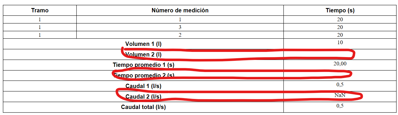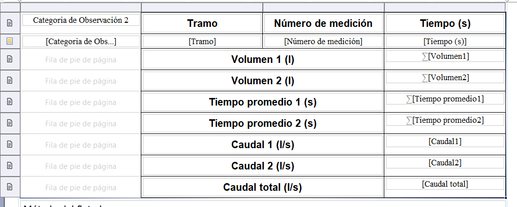 It works fine when there are two branches. But when we only have one, I’d like to hide the rows for “Volumen 2 (l)”, “Tiempo promedio 2 (s)”, and “Caudal 2 (l/s)”. I’m a bit confused about how to apply a computed column or filter to make that happen.